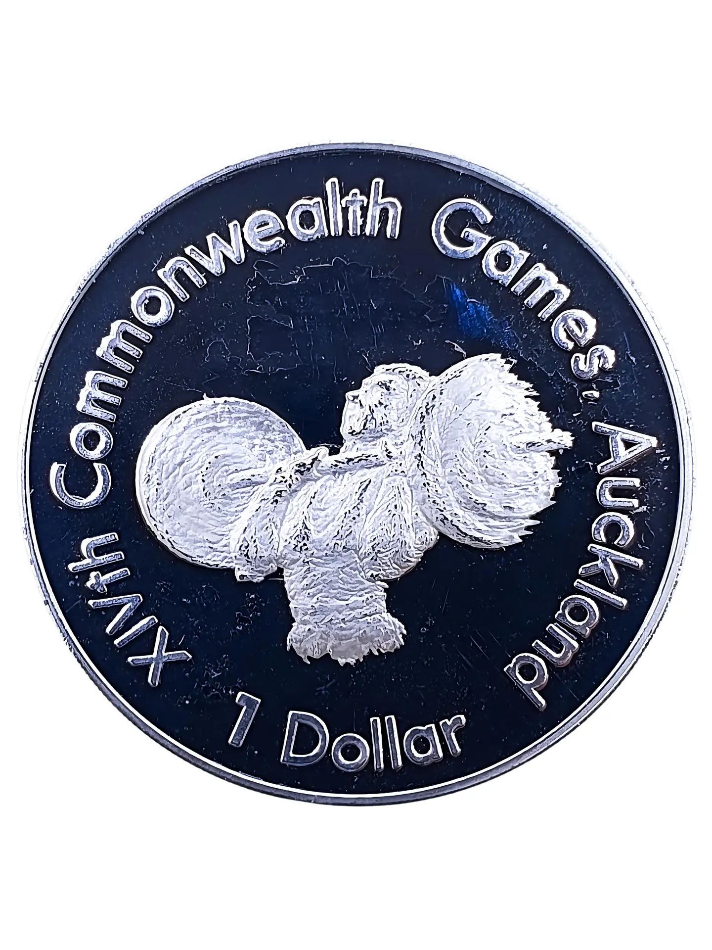1989 XIVth Common Wealth Games Weightlifter 1 Dollar Silver Coin